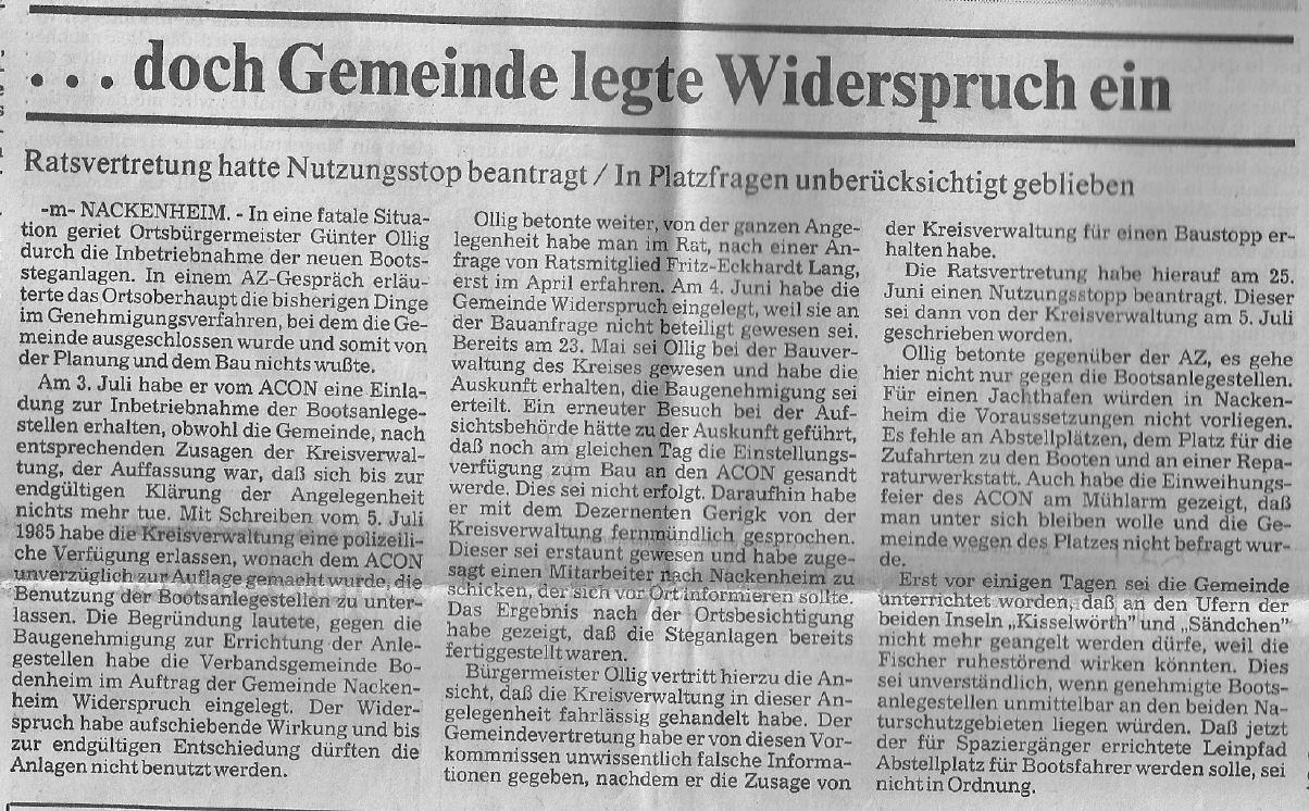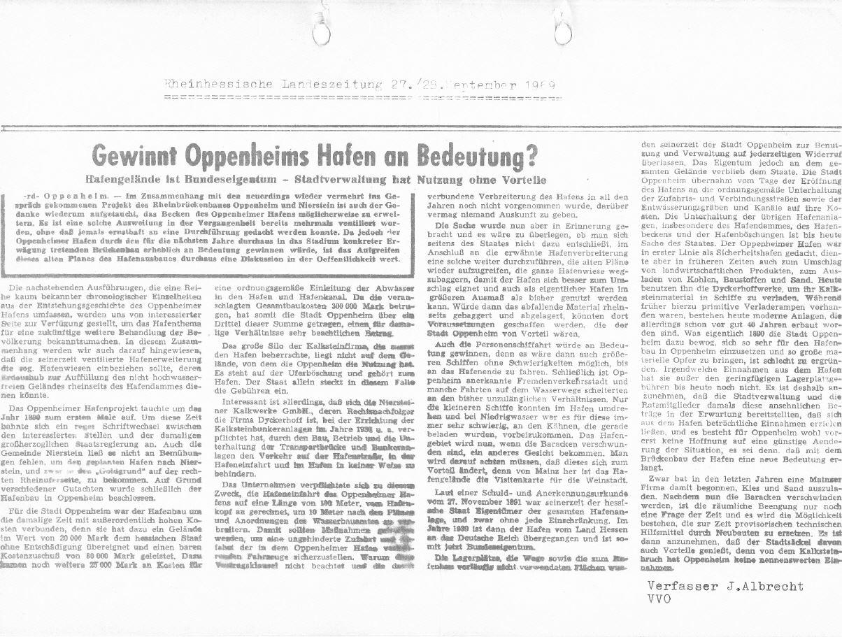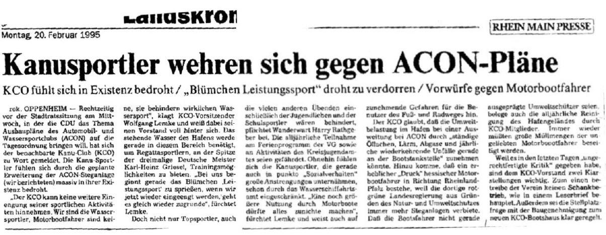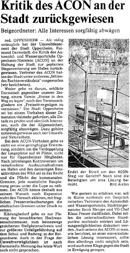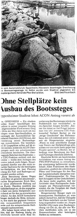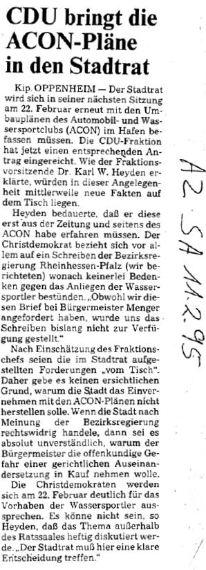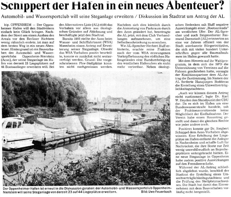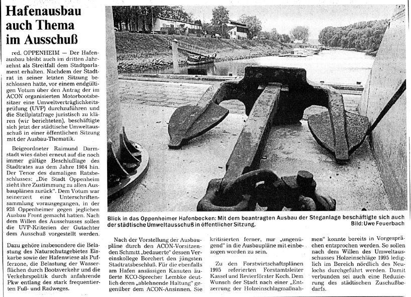 Der folgende Zeitungsausschnitt hat zwar nicht unmittelbar mit dem ACON zu tun, aber es geht um den Oppenheimer Hafen:
