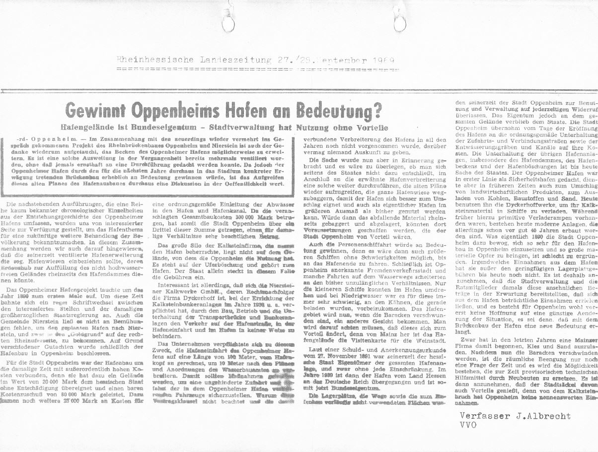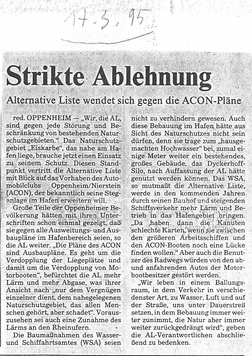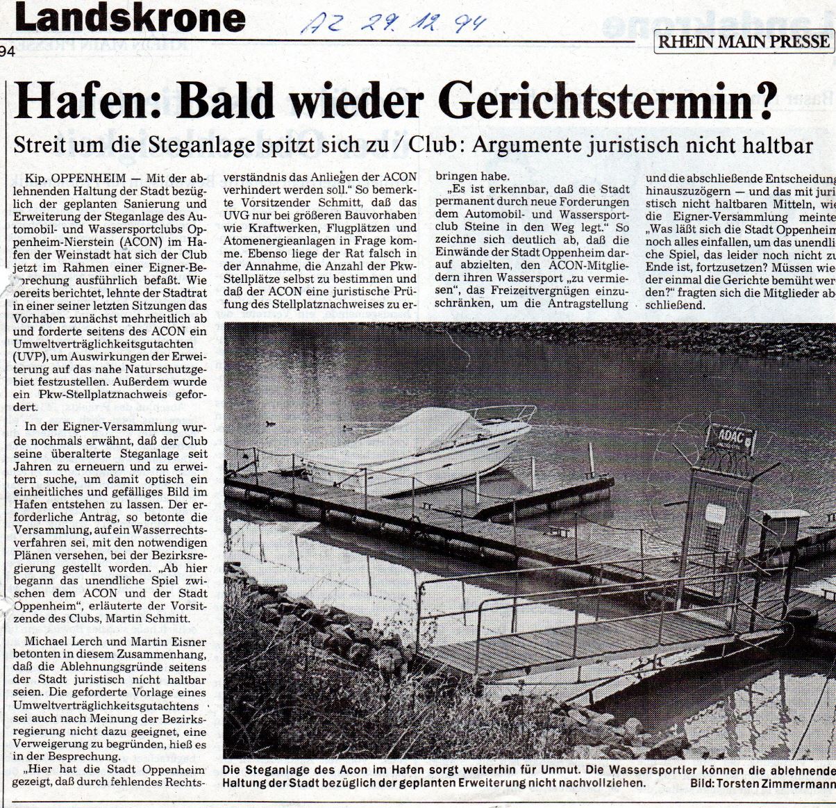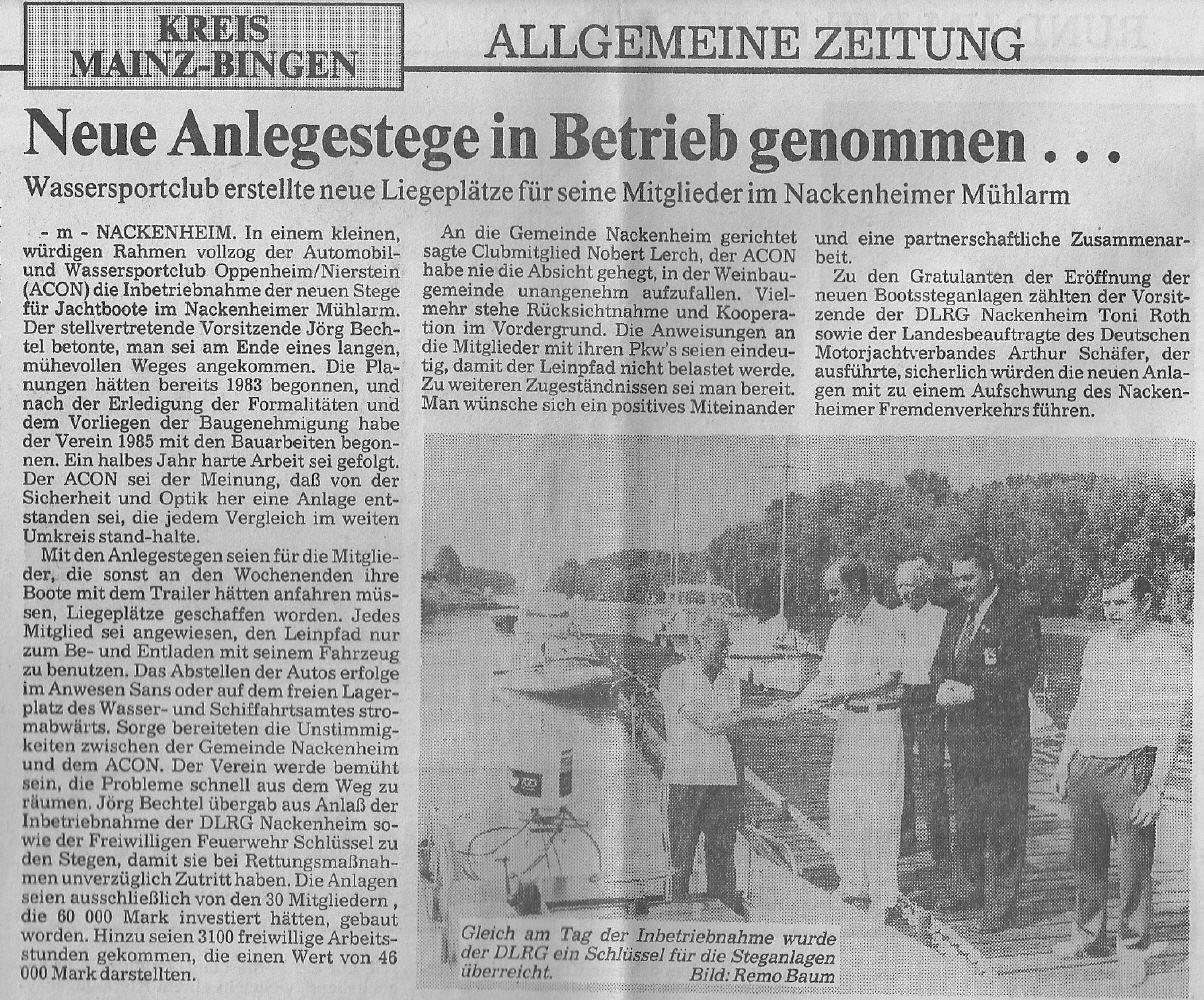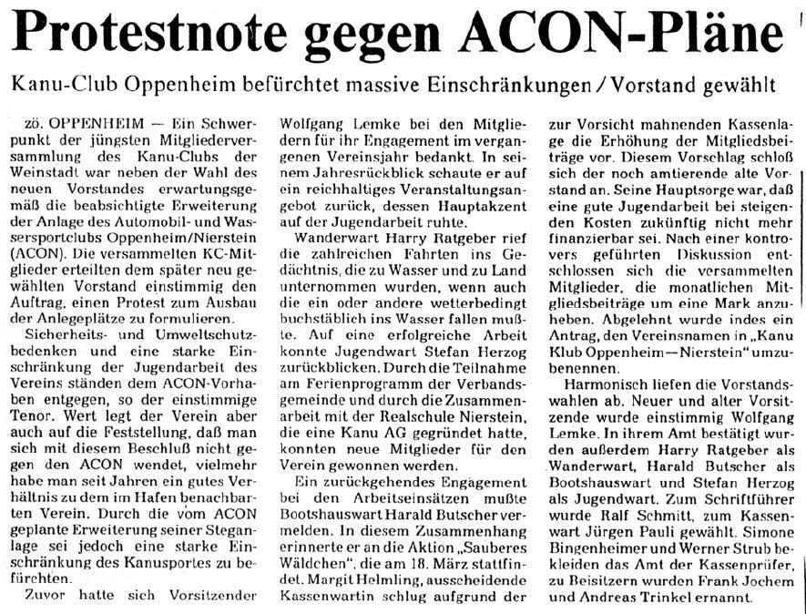 Der folgende Zeitungsausschnitt hat zwar nicht unmittelbar mit dem ACON zu tun, aber es geht um den Oppenheimer Hafen: