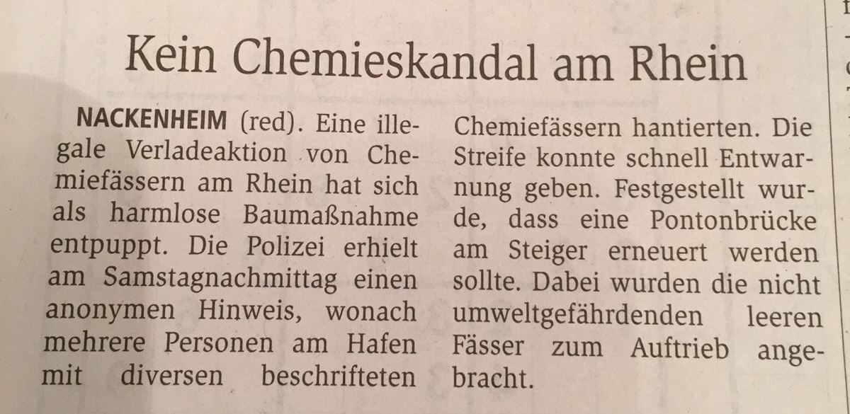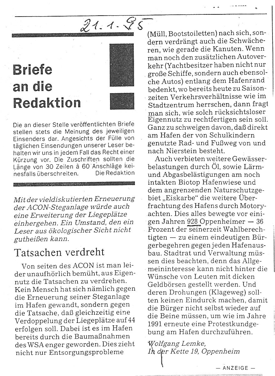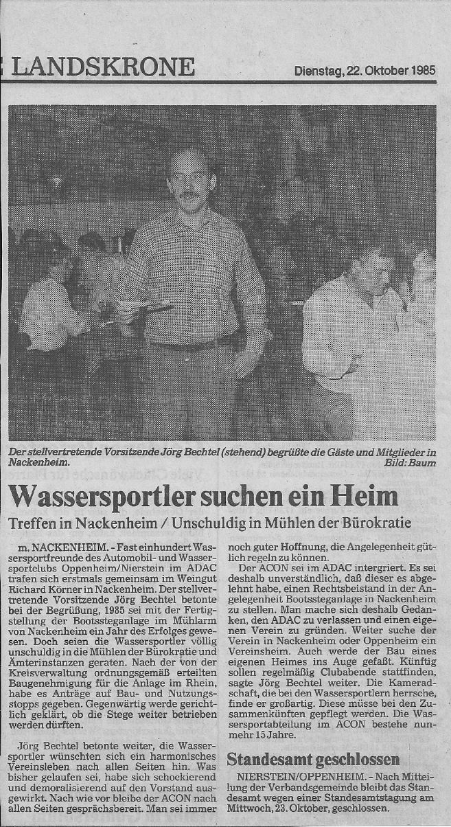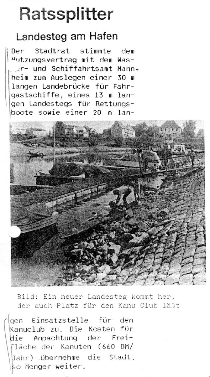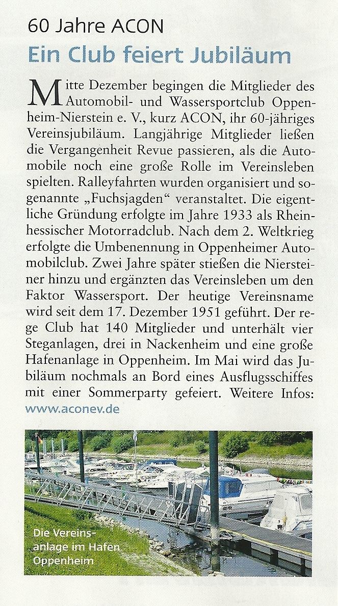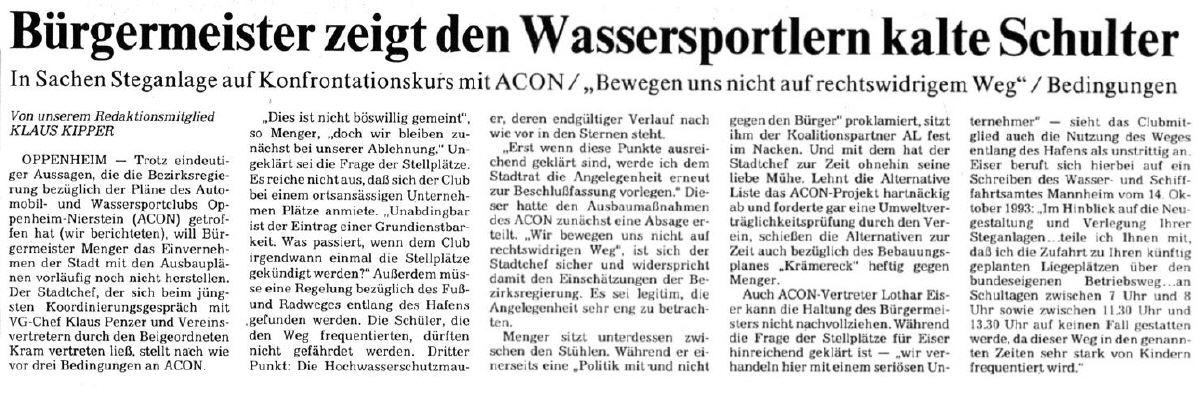 Der folgende Zeitungsausschnitt hat zwar nicht unmittelbar mit dem ACON zu tun, aber es geht um den Oppenheimer Hafen: