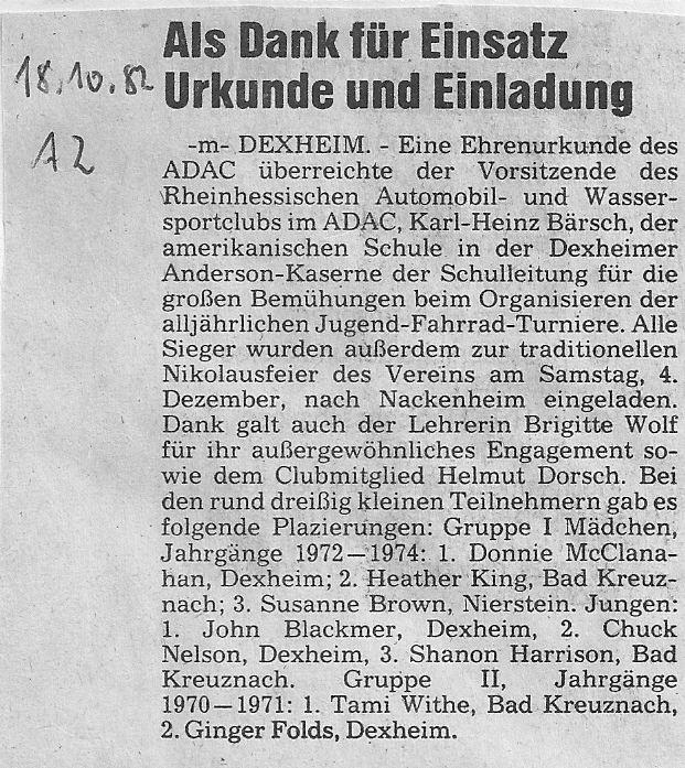 (c) Allgemeine Zeitung vom 18.10.1982 - Zur Verfügung gestellt von Wilfried Seif