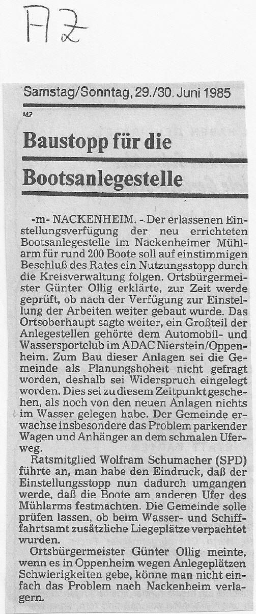 (c) Allgemeine Zeitung vom 29.06.1985 - Zur Verfügung gestellt von Wilfried Seif