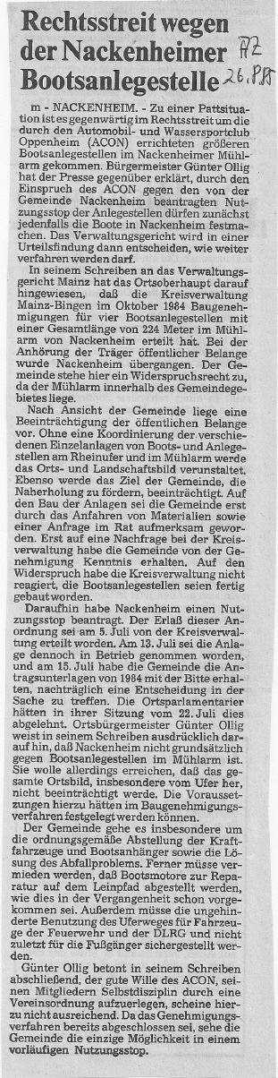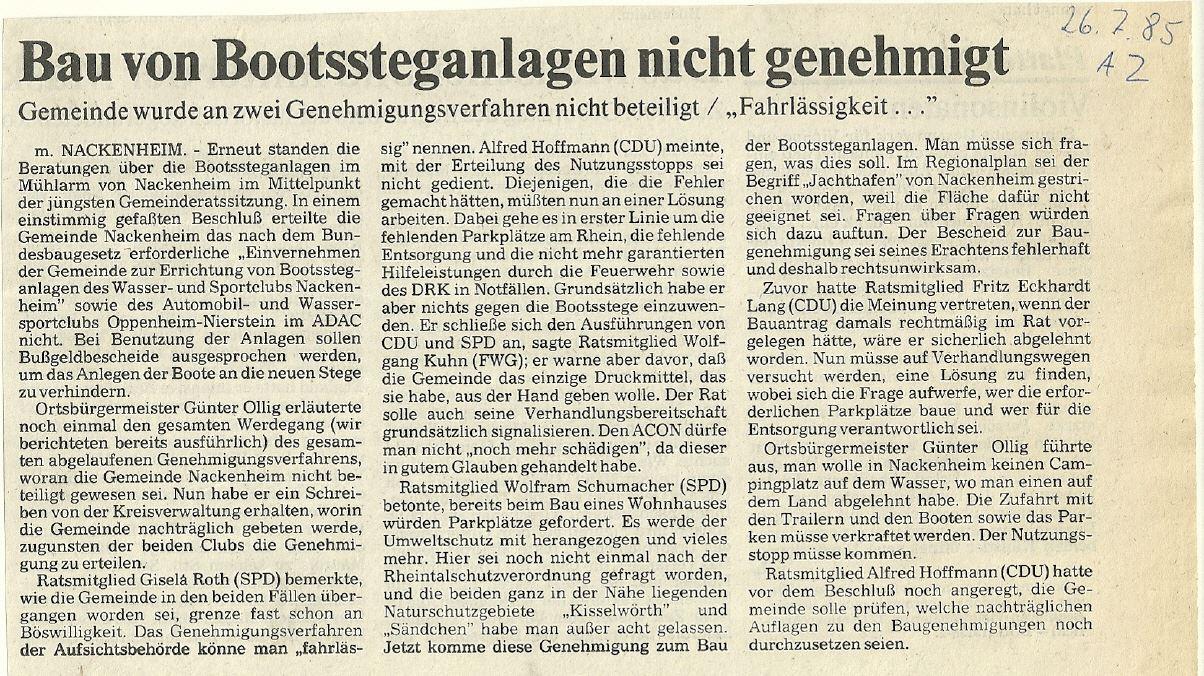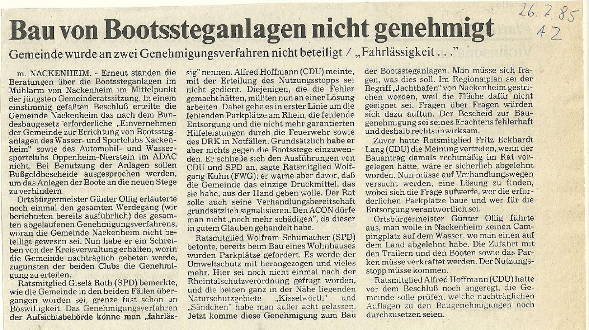 (c) Allgemeine Zeitung vom 26.07.1985 - Zur Verfügung gestellt von Wilfried Seif
