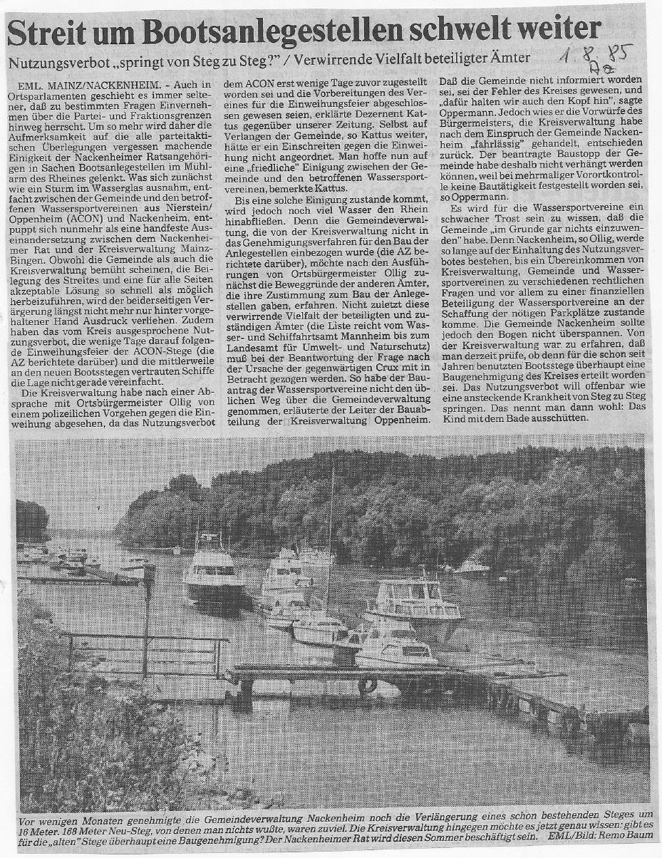 (c) Allgemeine Zeitung vom 01.08.1985 - Zur Verfügung gestellt von Wilfried Seif